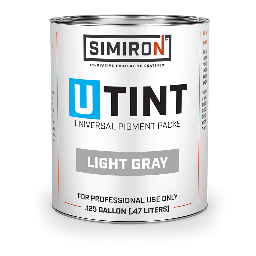 SIMIRON U-TINT Tint Packs are a high-performance, 100% solids, zero VOC line of universal pigment packs designed to be easily mixed into Simiron products such as epoxy, urethane, polyurea and polyaspartics.